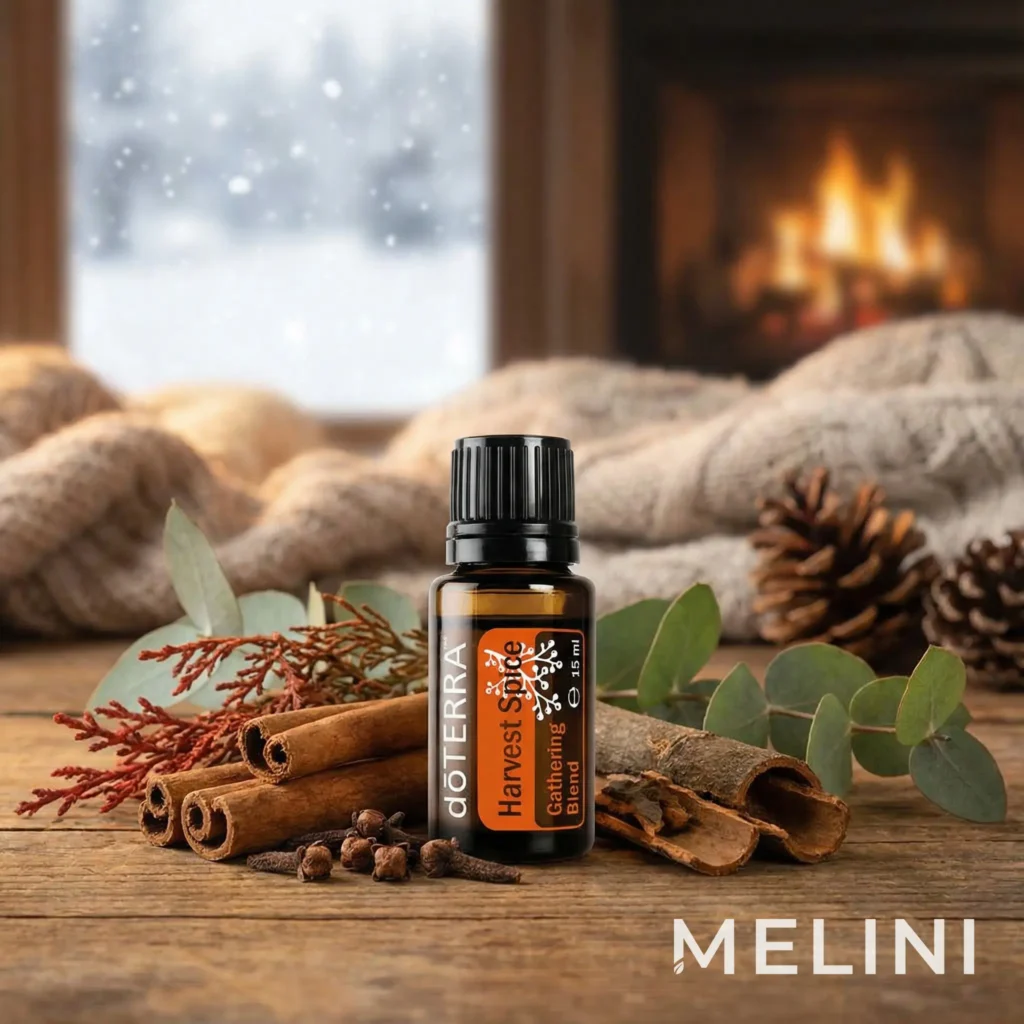The doTERRA Harvest Spice essential oil blend evokes the warmth of autumn holidays and the rich aroma of pumpkin spices, which instantly create a cosy, welcoming atmosphere.